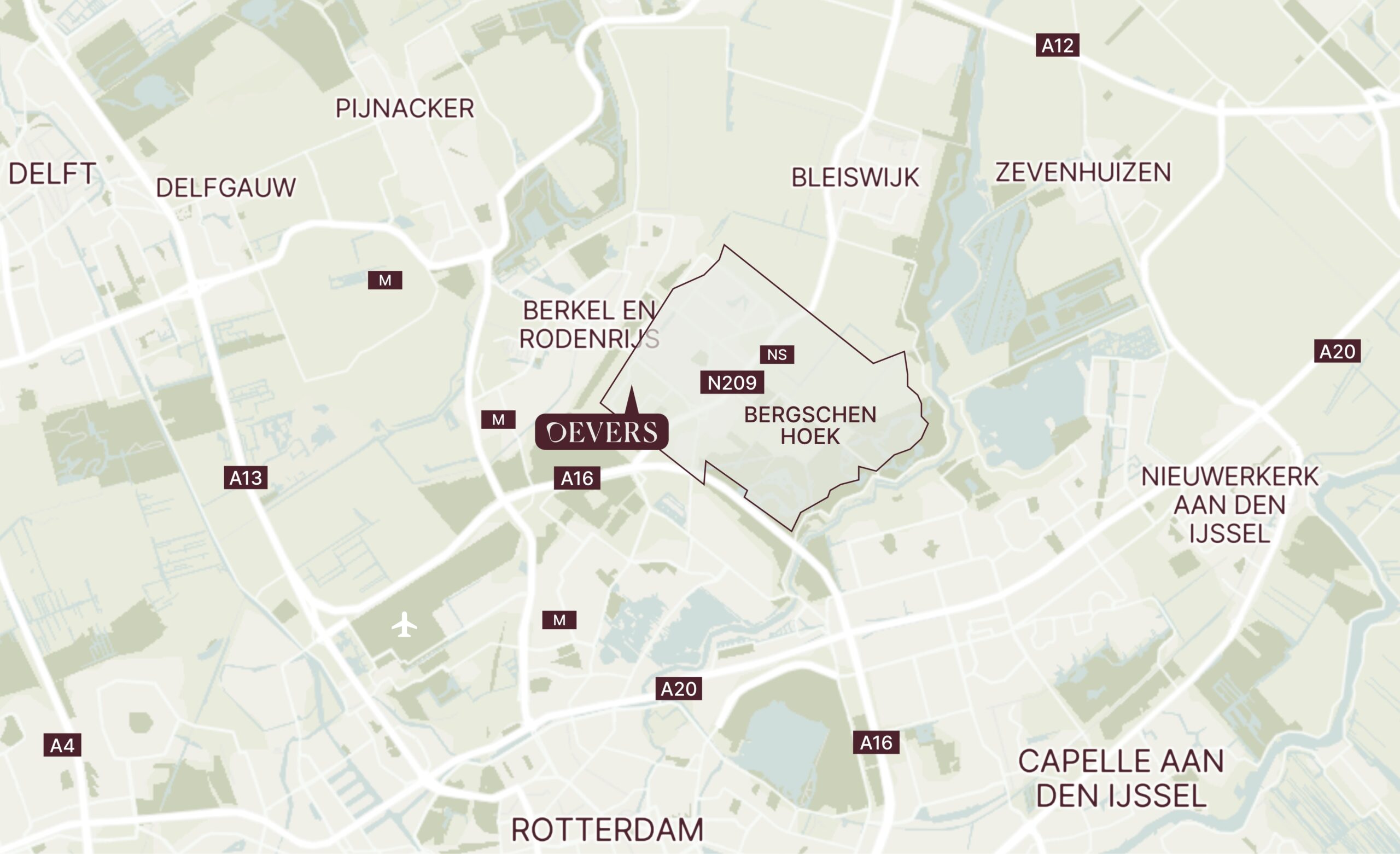 Stel je eens voor: wonen in de Randstad, omgeven door de rust van je eigen eiland. Zou zo’n plek bestaan? Ja, die is er: Oevers. Een klein eiland waar water en groen samen een idyllische sfeer creëren. Met ruime, exclusieve vrijstaande en halfvrijstaande villa’s die ontworpen zijn in harmonie met het landschap. Hier woon je in een decor van stilte en charme, met een verrassend centrale ligging. Het centrum van Bergschenhoek ligt om de hoek, Rotterdam is dichtbij. Hier creëer je een thuis dat je elke keer weer verwelkomt met rust en ruimte. En met het water dat het eiland omarmt.