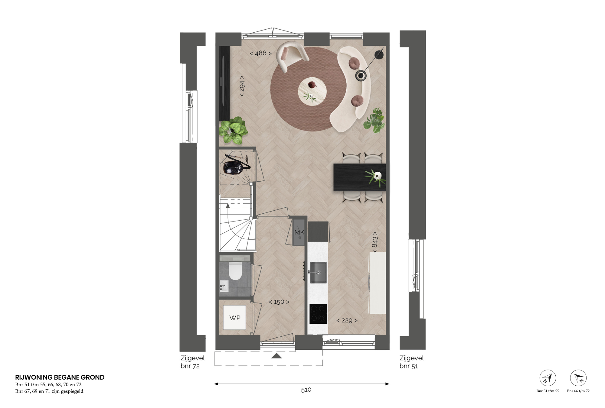 Type Beek bestaat uit 12 energiezuinige rijwoningen, verdeeld over twee blokken. Met een woonoppervlakte van circa 104 m² bieden deze woningen volop leefruimte, met drie slaapkamers en een vrij indeelbare zolder.